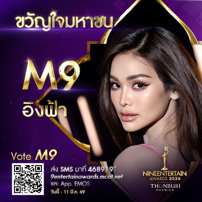 ร่วมเป็นส่วนหนึ่งของรางวัล “ไนน์เอ็นฯอวอร์ด 2026 presented by Thonburi Phanich” Rise of Thainess เปล่งประกายความเป็นไทยสู่สากล และสามารถติดตามรายละเอียดเพิ่มเติมได้ในรายการไนน์เอ็นเตอร์เทน ทาง ช่อง 9 กด 30, https://nineentertain.mcot.net, www.facebook.com/9entertain และ YouTube: NineEntertain Official