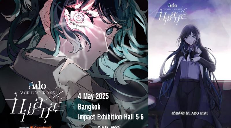 คอนเสิร์ต Ado WORLD TOUR 2025 “Hibana” Powered by Crunchyroll in BANGKOK จัดโดย AEG Presents Asia และ iMe Thailand จะจัดขึ้นในวันอาทิตย์ที่ 4 พฤษภาคม 2568 ที่ อิมแพ็ค เอ็กซิบิชั่น ฮอลล์ 5-6 บัตรราคาเริ่มต้น 3,000 บาท ซื้อบัตรได้ที่ Thaiticketmajor