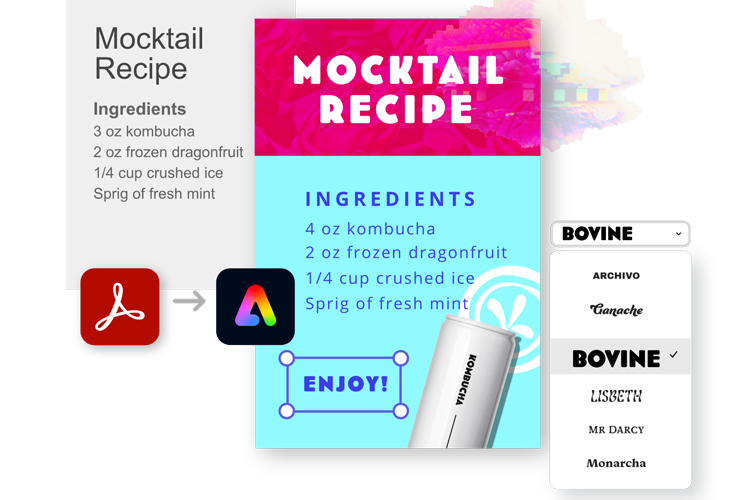 • พลัง AI ที่มากขึ้น ช่วยให้ครีเอเตอร์ทำงานออกแบบได้อย่างถูกต้องแม่นยำ ทั้งยังสามารถค้นหาส่วนเสริมที่สมบูรณ์แบบสำหรับคอนเทนต์ได้อย่างรวดเร็ว หรือรับคำแนะนำเทมเพลตที่เหมาะกับสไตล์ที่ไม่ซ้ำแบบใคร เพื่อสร้างโพสต์โซเชียลมีเดีย วิดีโอ โปสเตอร์ ใบปลิว และอื่นๆ