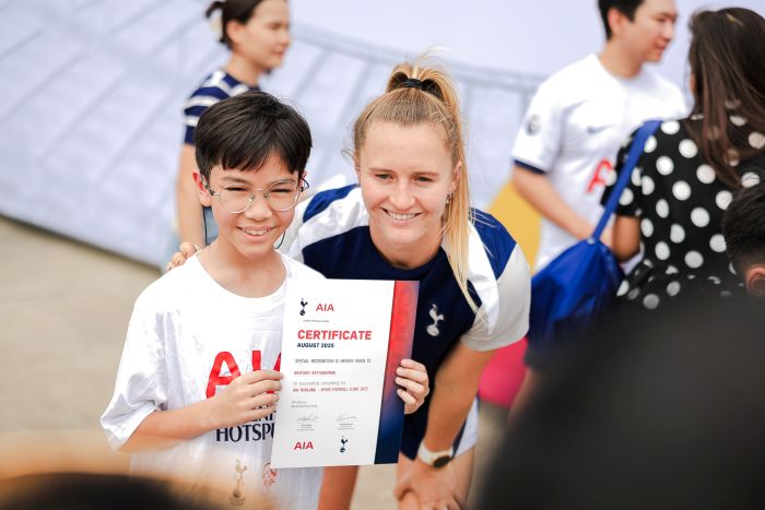 เอไอเอ ประเทศไทย นำทีมโดย นางสาวญดา วงศ์ทองคำ รองผู้อำนวยการอาวุโส ฝ่ายบริหารสิทธิพิเศษ และกิจกรรมลูกค้า สานต่อโครงการฝึกทักษะฟุตบอลให้แก่เยาวชนไทย ภายใต้กิจกรรม “เอไอเอ ไทยแลนด์ สเปอร์ส ฟุตบอล คลินิก 2025” เพื่อมุ่งเปิดโอกาสให้เยาวชนที่มีอายุระหว่าง 8-14 ปี กว่า 400 คน ได้เข้าร่วมกิจกรรมลงสนามฝึกทักษะฟุตบอลระดับมาตรฐาน กับโค้ชสเปอร์ส ซึ่งเป็นโค้ชพัฒนาระหว่างประเทศจากสโมสรท็อตแน่ม ฮ็อตสเปอร์