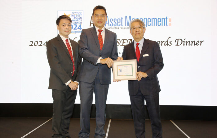 บลจ. เอไอเอ (ประเทศไทย) จำกัด คว้ารางวัล Best of the Best Award Winner 2024 ประเภทรางวัล “Best Bond Manager – Thailand” จาก นิตยสาร Asia Asset Management โดยมี นายสุขวัฒน์ ประเสริฐยิ่ง (กลาง) ประธานเจ้าหน้าที่บริหาร พร้อมคณะผู้บริหาร ขึ้นรับรางวัลจาก นาย Tan Lee Hock ผู้ก่อตั้งนิตยสาร Asia Asset Management สะท้อนถึงความสามารถของทีมผู้จัดการกองทุนของ บลจ. เอไอเอ (ประเทศไทย) ในการสร้างผลตอบแทนที่ดีอย่างสม่ำเสมอ รวมถึงมีการบริหารความเสี่ยงที่เหมาะสม