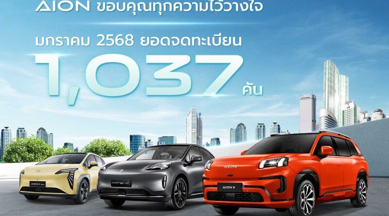 AION Thailand ขอบคุณทุกความไว้วางใจ ด้วยยอดจดทะเบียน 1,037 คัน ในเดือนมกราคม 2568