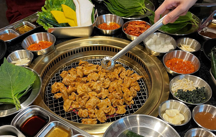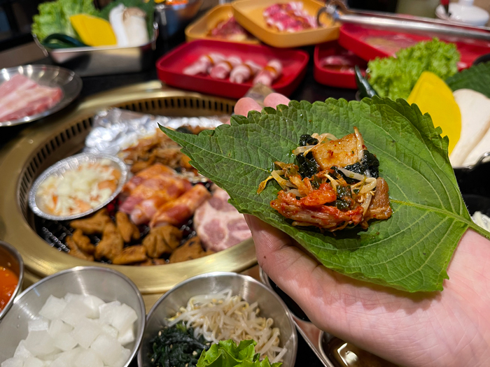 · พร้อมเพิ่มรสชาติให้กับอาหารด้วย ‘ใบงาเกาหลี’ ที่ต้องนำใบงามาบังหน้า แล้วตามด้วยหมูหรือเนื้อ ตามด้วยกิมจิก็อร่อยเพิ่มขึ้นอีก และยำแมงกระพรุน เครื่องเครื่องที่เพิ่มความกรุบกรอบหวาน เผ็ด ให้ทุกคำ