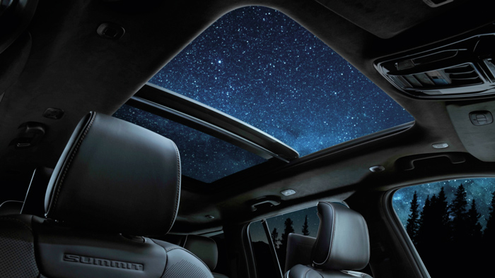 ขณะที่บริเวณกลางแดชบอร์ดเป็นจอระบบสัมผัสขนาด 10.1 นิ้ว ที่ใช้ระบบปฏิบัติการ ‘Uconnect 5’ รองรับ Android Auto และ Apple Car Play แบบไร้สาย พร้อมเพลิดเพลินกับ ‘McIntosh’ เครื่องเสียงระดับไฮเอนด์ 19 ลำโพง นอกจากนั้นยังได้รับการยกย่องให้เป็นห้องโดยสารที่หรูหราผ่านการตกแต่งด้วยวัสดุระดับพรีเมียม เบาะคู่หน้าหุ้มหนังแท้ Fine Grain คุณภาพสูง ‘ปาแลร์โม’ (Palermo) ปรับทิศทางด้วยไฟฟ้า 12 ตำแหน่ง พร้อมระบบระบายอากาศและฟังก์ชันนวดแผ่นหลัง ตกแต่งตามจุดต่างๆ ด้วยลายไม้วอลนัต พาโนรามิกซันรูฟ 2 ส่วน (Dual-Pane Panoramic Sunroof) ให้ความรู้สึกโปร่งสบาย พร้อมระบบปรับอากาศแบบ 4 โซน