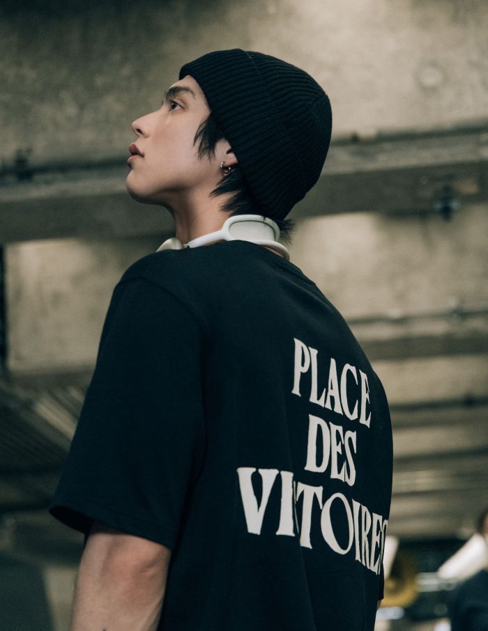 สำหรับลุคนี้ “ไบร์ท วชิรวิชญ์” ได้สวมเสื้อทีเชิ้ตสกรีนด้านหลังด้วยคำว่า “Place des Victoires” ซึ่งสื่อความหมายถึง จตุรัสสำคัญใจกลางกรุงปารีส อันเป็นตำแหน่งของโชว์ฤดูใบไม้ผลิ-ฤดูร้อน 2026 ที่กำลังจะเกิดขึ้นในครั้งนี้!! เรียกได้ว่านี่เป็นครั้งแรก และ “ไบร์ท” เป็นคนแรกที่ได้ทำการเฉลยหมุดหมายของโชว์สุดพิเศษนี้ และเขายังเลือกสวมกางเกงวูลกาบาร์ดีนทรงคาร์โก กับหมวกบีนนี่ AMI de Coeur ใบโปรด และ คอมพลีทลุคด้วยสนีกเกอร์ทรงโลว์ท็อป กับกระเป๋ารุ่น Paris Paris กระเป๋าไอคอนิกของ AMI Paris หนึ่งในคอลเลกชันจากฤดูกาลใบไม้ร่วง 2025