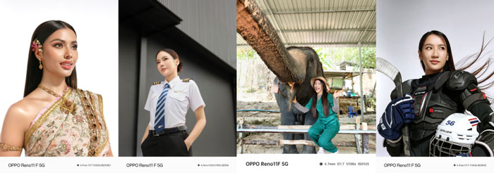 โดยงานนี้ OPPO ได้ถ่ายทอดความงดงามที่แตกต่างกันไปผ่านตัวแทนหญิงสาวทั้ง 4 คนที่นำเสนอความงามในรูปแบบที่แตกต่างกันที่ไม่จำเป็นต้องยึดติดกับมาตรฐานของสังคม ทั้ง “แอนโทเนีย โพซิ้ว” เจ้าของตำแหน่งรองอันดับ 1 มิสยูนิเวิร์ส ที่มาพร้อมความเป็นตัวของตัวเอง ส่งต่อความสวยจากภายในสู่ภายนอก , “ก้อย กรกช” นักบินหญิงผู้เก่งรอบด้าน , “โบว์ รัชดาภรณ์” หรือ โบว์ หมอรักษาช้าง สัตวแพทย์หญิงผู้มีความกล้าหาญและหัวใจที่เปี่ยมด้วยความรัก และ “น้ำตาล วิลาสินี” สาวแกร่งฮอกกี้น้ำแข็งทีมชาติไทย ผู้มาพร้อมด้วยหัวใจที่ทรงพลัง ไม่ว่าจะเป็นใคร ภาพพอร์ตเทรตจาก OPPO Reno11 F 5G ก็สามารถเก็บครบทุกความโดดเด่น เผยให้เห็นถึงความงามที่หลากหลาย และมอบความภาคภูมิใจให้ทุกคนมั่นใจในความงามของตนเอง