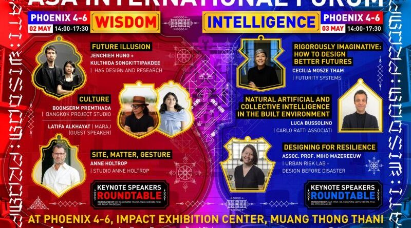 โดยในส่วนของกิจกรรมการสัมมนา ASA International Forum เป็นการรวมตัวของเหล่าสถาปนิกและนักออกแบบชั้นนำจากทั่วโลก เพื่อร่วมแสดงปาฐกถาและแลกเปลี่ยนแนวคิดภายใต้กรอบแนวคิด “สติมา : ปัญญา : พร้อม(ท์) ” (Sati : Wisdom : Prompt) งานเสวนาในครั้งนี้จะขอเชิญชวนทุกท่านมาร่วมขบคิดถึงรากฐานของสติปัญญาของมนุษย์ และความสัมพันธ์กับยุคสมัยแห่งปัญญาประดิษฐ์ที่กำลังก้าวเข้ามา เพื่อร่วมกันกำหนดทิศทางไปสู่ยุคใหม่แห่ง “ปัญญาแบบผสมผสาน” (Hybridized Wisdom) การเสวนาในปีนี้แบ่งออกเป็น 2 ช่วงสำคัญ โดยแต่ละช่วงจะศึกษาวิเคราะห์ระหว่าง “ปัญญา” (Wisdom) ซึ่งหมายถึงความลุ่มลึกของความรู้ วัฒนธรรม และพลังสร้างสรรค์ของมนุษย์ กับ “ความฉลาดใหม่” (New Intelligence) ซึ่งหมายถึงศักยภาพในการเปลี่ยนแปลงโลกของระบบปัญญาประดิษฐ์และระบบการคำนวณในการสร้างสรรค์สภาพแวดล้อมทางกายภาพ