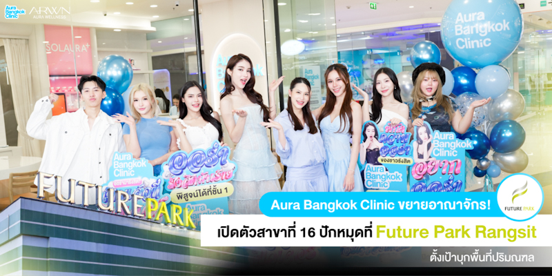 สิ้นสุดการรอคอย! Aura Bangkok Clinic เปิดสาขาที่ 16 ณ Future Park Rangsit ห้างใหญ่ใจกลางรังสิต เริ่มตีตลาดปริมณฑล จัดแคมเปญเปิดตัวกระชากใจ ทำยอดจองคิววันแรกพุ่งเกินคาด