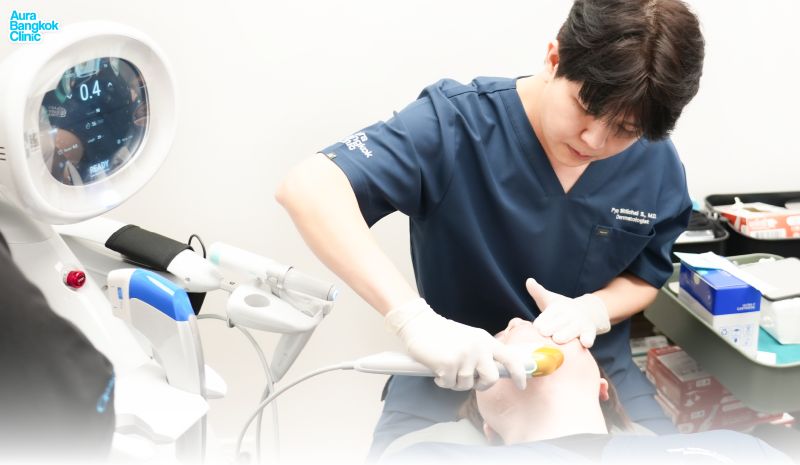 Exclusive กว่าใคร! เพราะ Aura Bangkok Clinic เป็นคลินิกแรกในไทย ที่นำเทรนด์เปิดตัวคอมโบนวัตกรรม 2 in 1 ยกหน้าเรียว & กระตุ้นหน้าใส เครื่องยกกระชับสามารถดูแลผิวได้ครอบคลุมทุกมิติ เก็บหมดทุกชั้นผิว มาพร้อมหัวยิงที่ส่งพลังงานลึกถึงชั้นกล้ามเนื้อ และหัวยิงพิเศษสำหรับกระตุ้นหน้าใส ใช้คู่กับ Bright & Shine Booster ทรีตเมนต์ผลักวิตามินเข้าสู่ผิวหน้าช่วยกระตุ้นการสร้างคอลลาเจนในชั้นผิว กระชับรูขุมขน เพื่อผิวเรียบเนียน กระจ่างใส ตอบโจทย์เทรนด์การดูแลผิวแบบ Full Loop ทรีตเมนต์พิเศษแบบนี้ที่มีเฉพาะที่ Aura Bangkok Clinic เท่านั้น เสริมความมั่นใจในเทคนิคและผลลัพธ์ที่ดีที่สุด เพราะให้บริการโดยแพทย์ชำนาญการของ Aura Bangkok Clinic ที่ผ่านการเทรนด์จาก ผู้เชี่ยวชาญด้านเครื่องยกกระชับจาก Paragon Care โดยตรง เก็บทุกเทคนิค ทุกดีเทล เหมือนทำเครื่องยกกระชับกับผู้เชี่ยวชาญเจ้าของนวัตกรรมจากประเทศเกาหลี