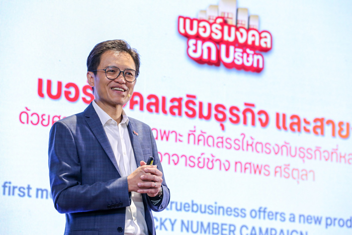 อ.ช้าง-ทศพร ศรีตุลา กล่าวว่า ศาสตร์ความเชื่อเรื่องตัวเลขเข้ามามีบทบาทสำคัญในชีวิตคนไทยมาอย่างยาวนาน ด้วยเชื่อว่าจะเสริมชีวิตให้เจริญ รุ่งเรือง และราบรื่นได้ เพราะตัวเลขแต่ละตัว มีความหมายสื่อถึงพลังพิเศษในด้านต่างๆ ที่แตกต่างกัน ซึ่งนอกจากความเชื่อเรื่องตัวเลขที่เกี่ยวข้องกับการดำเนินชีวิตของตัวเองแล้ว ยังมีอิทธิพลต่อการดำเนินธุรกิจ โดยเฉพาะเจ้าของกิจการ หรือ SME ห้างร้านต่างๆ ก็อยากเสริมมงคล สร้างกำลังใจ ช่วยให้ธุรกิจประสบความสำเร็จ ซึ่งทรูบิสิเนสเห็นถึงความต้องการของลูกค้าธุรกิจสายมูกลุ่มนี้ โดยบริการเบอร์มงคลยกบริษัท นับเป็นมิติใหม่ของการยกระดับให้บริการเบอร์มงคล ซึ่งครั้งนี้ได้คัดสรรชุดตัวเลขเฉพาะ สามารถเลือกให้เหมาะสมกับกลุ่มธุรกิจและสายงานขององค์กร มั่นใจว่าจะตอบโจทย์ลูกค้าองค์กรสายมู ให้เป็นก้าวแรกของการสร้างธุรกิจให้ก้าวหน้า เก่งทุกสายงาน เสริมเฮงในทุกธุรกิจ ปังยกทั้งออฟฟิศอย่างแน่นอน