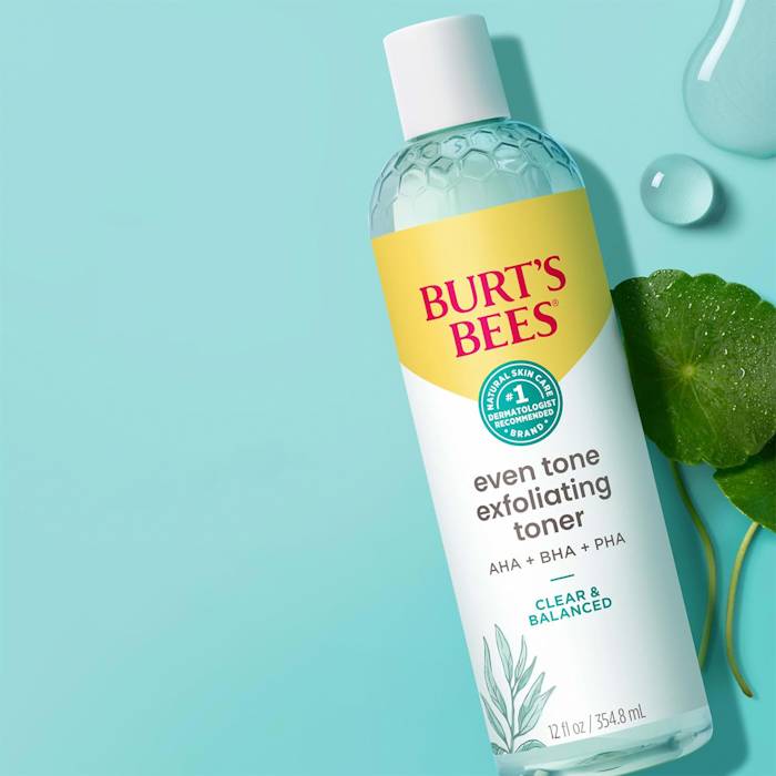 โทนเนอร์ชนิดน้ำ มีส่วนผสมของ AHA, PHA และ BHA 10% จากธรรมชาติ ลดเลือนจุดด่างดำ รอยดำรอยแดงจากสิว ลดเลือนริ้วรอย ผสานสารต้านอนุมูลอิสระจากสารสกัดจากเปลือกต้นวิลโลว์ ช่วยกระชับรูขุมขน ปรับสมดุลผิว และช่วยผลัดเซลล์ผิวอย่างอ่อนโยนเพื่อเผยผิวเรียบเนียนกระจ่างใสขึ้นหลังการใช้เป็นประจำ Burt’s Bees® Even Tone Liquid Exfoliant เป็นผลิตภัณฑ์ดูแลผิวจากธรรมชาติที่แพทย์ผิวหนังอันดับหนึ่งแนะนำ* โดยสามารถดูได้จากสัญลักษณ์วงกลมสีเขียวบนผลิตภัณฑ์