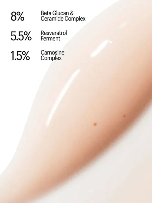 เซรั่มบำรุงความชุ่มชื้นรุ่นล่าสุดที่พัฒนาขึ้นด้วยเทคโนโลยีล้ำสมัย พร้อมมอบความชุ่มชื้นเข้มข้นอย่างยาวนานให้กับผิว ผสานประสิทธิภาพของสารสกัดชั้นเลิศ ทั้ง Beta Glucan & Ceramide Complex 8.0%, Resveratrol & Polysaccharide Complex 5.5% และ Carnosine Complex 1.5% ที่ทำงานร่วมกันช่วยกักเก็บความชุ่มชื้น พร้อมทั้งปกป้องผิวด้วยพลังต้านอนุมูลอิสระ ส่งผลให้ผิวเรียบเนียน อิ่มฟู และเปล่งประกาย