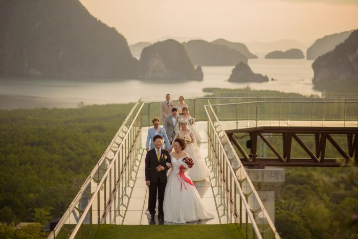 พังงาสร้างปรากฏการณ์! เปลี่ยนสกายวอล์คกระจกยาวที่สุดในไทย เป็นรันเวย์วิวาห์ ‘ปักหมุดแลนด์มาร์คแต่งงานระดับโลก