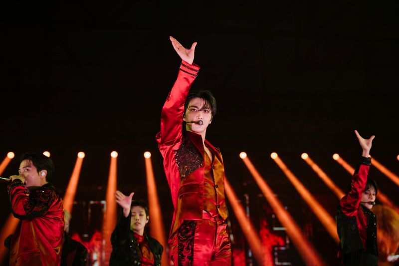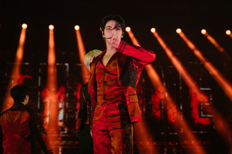 The night kicked off with a VCR telling the story of “THE SHAPE OF FANTASY” amid deafening screams. The eight members—HONGJOONG, SEONGHWA, YUNHO, YEOSANG, SAN, MINGI, WOOYOUNG, and JONGHO—made a grand entrance with stunning visuals in red and black costumes, radiating an overwhelming charisma that perfectly matched the fans who dressed in the same theme.
