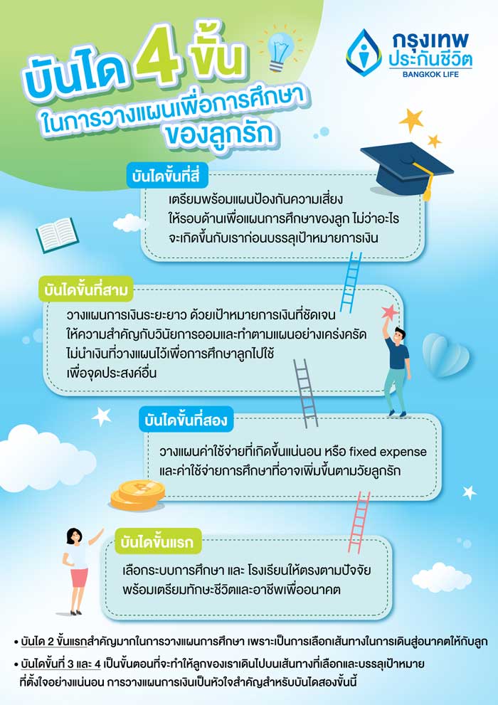 กรุงเทพประกันชีวิตแชร์ บันได 4 ขั้นในการวางแผนเพื่อการศึกษาของลูกรัก