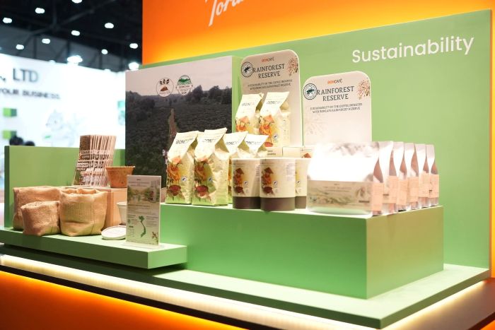 คุณอุษาพรรณ อินทีวรวงศ์ ประธานเจ้าหน้าที่ฝ่ายบริหาร บริษัท บอนกาแฟ (ประเทศไทย) จำกัด กล่าวว่า ในปี 2025 นี้ นับเป็นการกลับมาอีกครั้งของบอนกาแฟ ที่ได้เข้าร่วมเทศกาล Thailand Coffee Fest และยินดีต้อนรับทุกท่านกลับสู่โลกของบอนกาแฟอย่างอบอุ่น ซึ่งทางบอนกาแฟ มองเห็นว่า คอนเซ็ปต์ของงาน Thailand Coffee Fest ในปีนี้คือ Drink Better Coffee สอดคล้องกับผลิตภัณฑ์ในกลุ่มกาแฟของบอนกาแฟ ที่เป็นกาแฟออร์แกนิก และกาแฟ Rainforest เมล็ดกาแฟคั่วระดับพรีเมียม จากฟาร์มที่ได้รับการรับรองจาก Rainforest Alliance ที่มีแหล่งเพาะปลูกในพื้นที่เขตอนุรักษ์สิ่งแวดล้อม ไม่รุกล้ำพื้นที่ป่า ช่วยลดการตัดไม้ทำลายป่า และอนุรักษ์ความหลากหลายทางชีวภาพ ให้รสชาติที่กลมกล่อม พร้อมส่งเสริมอนาคตที่ยั่งยืน โดยมีสัญลักษณ์ หรือโลโก้ “กบต้นไม้ตาแดง” (Red-Eyed Tree Frog) เป็นเครื่องหมายรับรองมานานกว่า 30 ปี เพราะกบคือสัตว์ที่นักวิทยาศาสตร์เรียกว่า ตัวชี้วัดสุขภาพของธรรมชาติ ถ้าในพื้นที่ไหนมีกบจำนวนมาก บ่งชี้ว่าสิ่งแวดล้อมบริเวณนั้นยังสมบูรณ์ แต่ถ้ากบเริ่มหายไป ก็อาจเป็นสัญญาณว่าสิ่งแวดล้อมโลกกำลังมีปัญหาหรือไม่ ซึ่งตรงกับความมุ่งมั่นของทางบอนกาแฟที่ดำเนินธุรกิจด้วยความยั่งยืนตั้งแต่ต้นน้ำจนถึงปลายน้ำ