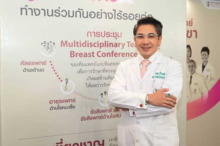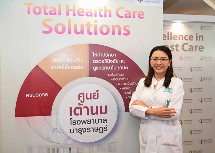 รศ. นพ. วิชัย วาสนสิริ หัวหน้าศูนย์เต้านม โรงพยาบาลบำรุงราษฎร์ กล่าวว่า ที่ศูนย์เต้านม โรงพยาบาลบำรุงราษฎร์ เราดูแลผู้ป่วยได้อย่างครบวงจรแบบองค์รวม โดยเราให้คำปรึกษา ตรวจวินิจฉัย และดูแลรักษาผู้ป่วยที่มีปัญหาเกี่ยวกับเต้านมในทุกมิติ เช่น มะเร็งเต้านม ก้อนที่เต้านม อาการเจ็บเต้านม พังผืดและถุงน้ำที่เต้านม ภาวะเต้านมอักเสบ และปัญหาอื่นๆ