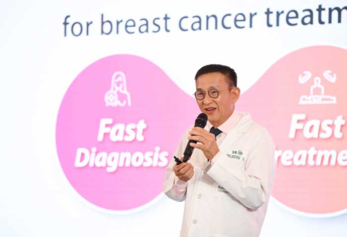 “ทั้งนี้ ผู้หญิงทุกคนที่อายุมากกว่า 40 ปี ควรตรวจเต้านมเป็นประจำทุกปี และปรึกษาแพทย์เพื่อรับการตรวจคัดกรองมะเร็งเต้านม เพราะการศึกษาพบว่ามะเร็งเต้านมจะมีอุบัติการณ์ที่เพิ่มมากขึ้นในผู้หญิงที่อายุมากกว่า 40 ปี ดังนั้น หากยิ่งมาตรวจได้เร็ว ก็จะรักษาได้ง่ายและมีโอกาสหายได้มากยิ่งขึ้น” รศ. นพ. วิชัย วาสนสิริ หัวหน้าศูนย์เต้านม โรงพยาบาลบำรุงราษฎร์ กล่าวทิ้งท้าย