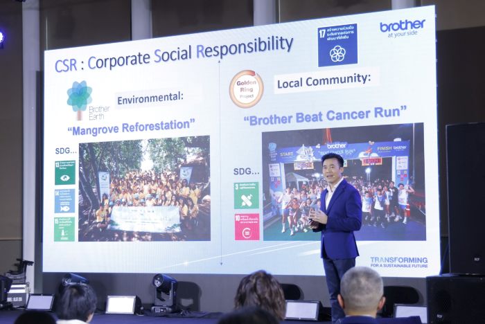 นายพรภัค อุไพศิลป์สถาพร ผู้จัดการทั่วไปฝ่ายการเงินและการบริหาร บริษัท บราเดอร์ คอมเมอร์เชี่ยล (ประเทศไทย) จำกัด กล่าวว่า ” Brother มุ่งมั่นที่จะดำเนินธุรกิจโดยมีความรับผิดชอบต่อสังคม (CSR) โดยให้ความสำคัญแก่ผู้มีส่วนได้ส่วนเสียทุกฝ่ายอย่างสม่ำเสมอ โดยตลอดระยะเวลาที่ผ่านมาได้เดินหน้าขับเคลื่อนหลากหลายกิจกรรมขององค์กรตามแนวคิด “At Your Side ” และ “Brother Group Environmental Vision 2050” ซึ่งปีนี้ ยังคงมุ่งดำเนินกิจกรรม CSR ต่อเนื่อง ครอบคลุมทั้งด้าน ESG และตอบโจทย์เป้าหมายการพัฒนาที่ยั่งยืน (SDGs) ภายใต้ 2 กิจกรรมหลัก ได้แก่ กิจกรรมปลูกป่าชายเลน (Mangrove Reforestation) ที่ตั้งเป้าหมายการรอดของต้นกล้ามากกว่า 80% และกิจกรรม “Brother Beat Cancer Run” ที่ได้ดำเนินการต่อเนื่องเข้าสู่ปีที่ 12 ที่มีวัตถุประสงค์เพื่อสนับสนุนผู้ป่วยมะเร็งที่ขาดแคลนทุนทรัพย์ และสร้างความตระหนักด้านการดูแลสุขภาพ สอดคล้องไปกับ Golden Ring Project พันธกิจระดับโลกของ Brother ประเทศญี่ปุ่น ที่มุ่งเน้นการส่งเสริมสุขภาพและพัฒนาคุณภาพชีวิตของผู้คนในทุกมิติ ซึ่งในปีที่ผ่านมากิจกรรมดังกล่าวสามารถระดมทุนได้กว่า 16.3 ล้านบาท สามารถช่วยผู้ป่วยมะเร็งได้กว่า 975 ราย นอกจากนี้ยังมีโครงการอื่น ๆ เช่น “No Ocean Waste” และการบริจาคเพื่อช่วยเหลือผู้ประสบภัยในสถานการณ์ต่าง ๆ เพื่อตอกย้ำความมุ่งมั่นในการเป็นองค์กรที่มีความรับผิดชอบและพร้อมเติบโตร่วมกับสังคมอย่างยั่งยืน ตอกย้ำความเป็นผู้นำด้านนวัตกรรมเครื่องพิมพ์ที่ใส่ใจลูกค้า สังคมและสิ่งแวดล้อม” นายพรภัค กล่าวทิ้งท้าย