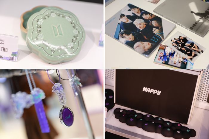 ที่สำคัญพบกับสินค้าสุดเอ็กซ์คลูซีฟ อาทิ Artist-Made Collection by BTS อย่าง PAJAMA โดย JIN, Black Note & Cover Set โดย SUGA, HOPE POT SET โดย J-HOPE, With You Hoodie โดย JIMIN, Mute Boston Bag โดย V, Mikrokosmos Mood Lamp โดย JUNG KOOK และอีกมากมาย รวมทั้งโปสเตอร์, โปสการ์ด, สติ๊กเกอร์, พวงกุญแจแท่งไฟ