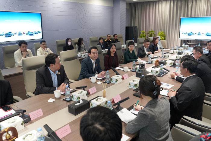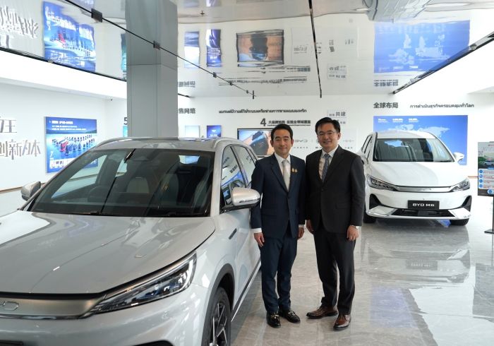 คณะผู้บริหารพร้อมตัวแทนจาก บริษัท บีวายดี ออโต้ (ประเทศไทย) และ บริษัท เรเว่ ออโตโมทีฟ จำกัด ผู้จัดจําหน่ายและให้บริการหลังการขายรถยนต์พลังงานไฟฟ้า BYD และ DENZA อย่างเป็นทางการในประเทศไทย ให้การต้อนรับ ดร. เผ่าภูมิ โรจนสกุล รัฐมนตรีช่วยว่าการกระทรวงการคลัง พร้อมด้วย ดร. กุลยา ตันติเตมิท อธิบดีกรมสรรพสามิต และคณะผู้บริหารกรมสรรพสามิต ในระหว่างการลงพื้นที่ตรวจเยี่ยมโรงงานผลิตรถยนต์ BYD ซึ่งตั้งอยู่ที่นิคมอุตสาหกรรม WHA จังหวัดระยอง เพื่อเตรียมความพร้อมการปรับโครงสร้าง ภาษีสรรพสามิตรถยนต์ Plug-in Hybrid Electric Vehicle (PHEV)