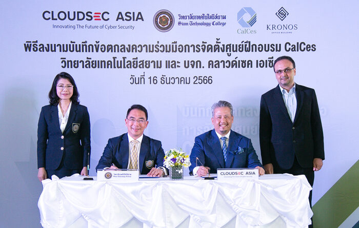 “คลาวด์เซค” จับมือ “วิทยาลัยเทคโนโลยีสยาม” ลงนามความร่วมมือจัดตั้งศูนย์ฝึกอบรม CalCes บุกเบิกปั้น 2 หลักสูตรความมั่นคงปลอดภัยไซเบอร์