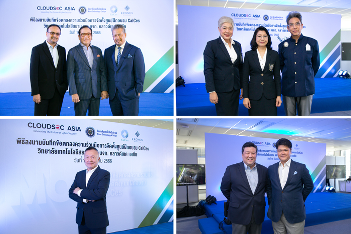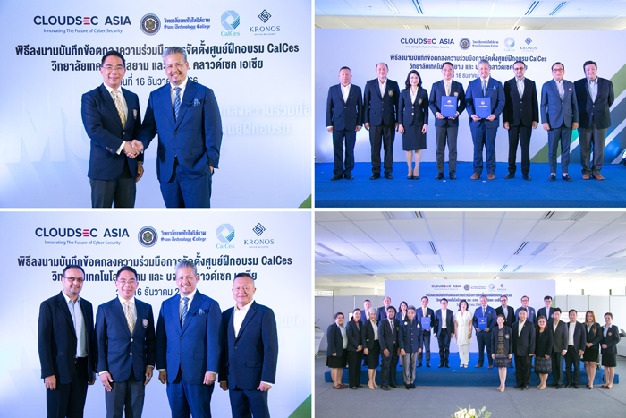 บริษัท คลาวด์เซค เอเซีย จำกัด และ วิทยาลัยเทคโนโลยีสยาม จัดพิธีลงนามความร่วมมือจัดตั้งศูนย์ฝึกอบรม CalCes บุกเบิกเปิดหลักสูตรปริญญาโทด้านความมั่นคงปลอดภัยไซเบอร์ (Master of Science in Professional Cybersecurity) และหลักสูตรระยะสั้นด้านความมั่นคงปลอดภัยไซเบอร์ (Short Courses) สำหรับผู้บริหาร ตั้งเป้าผลิตบุคลากรผู้เชี่ยวชาญปฏิบัติงานได้จริง ป้อนองค์กรภาครัฐและเอกชน พร้อมเปิดศูนย์ความปลอดภัยไซเบอร์ช่วยเหลือสังคม ห่างภัยคุกคามทางไซเบอร์
