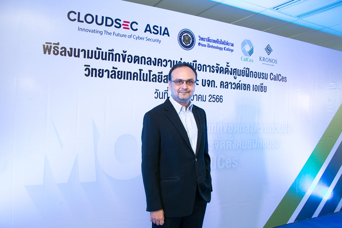 ด้าน ผศ.พรพิสุทธิ์ มงคลวนิช อธิการบดี วิทยาลัยเทคโนโลยีสยาม กล่าวว่า วิทยาลัยเทคโนโลยีสยามมุ่งมั่นที่จะสร้างบุคลากรที่มีความเชี่ยวชาญในความมั่นคงปลอดภัยไซเบอร์ และสามารถปฏิบัติงานในภาคอุตสาหกรรมได้จริง วิทยาลัยฯ จึงได้จัดทำข้อตกลงกับบริษัท คลาวด์เซค เอเซีย จำกัด ซึ่งเป็นบริษัทที่มีชื่อเสียงระดับสากล และมีผู้เชี่ยวชาญด้านความมั่นคงปลอดภัยไซเบอร์ที่มีประสบการณ์มากกว่า 20 ปี ที่ครอบคลุมการทำงานทั่วเอเซียแปซิฟิก ทั้งคลาวด์เซค เอเซีย และวิทยาลัยฯ ตระหนักถึงความสำคัญของการผลิตบุคลากรด้านความมั่นคงปลอดภัยไซเบอร์ที่สามารถตอบโจทย์ความต้องการของภาคอุตสาหกรรมได้จริง โดยในปี 65 เราได้ร่วมกันพัฒนาหลักสูตรความมั่นคงปลอดภัยไซเบอร์ที่ทันสมัยและสอดรับกับเทคโนโลยีแห่งอนาคต มุ่งเน้นในการผลิตบุคลากรที่สามารถนำความรู้ไปปฏิบัติงานได้จริง ไม่ว่าจะเป็นผู้ปฏิบัติงานในบริษัทต่างๆ เจ้าของกิจการ หรือนักวิชาการ ปัจจุบันอยู่ระหว่างการจัดตั้งศูนย์ฝึกอบรม CalCes ณ ชั้น 11 ของอาคารโครนอส สาทร โดยมีพื้นที่ใช้สอยประมาณ 250 ตารางเมตร ประกอบด้วยห้องฝึกอบรม ห้องแล็บที่ทันสมัย ห้องประชุมสัมมนา รวมถึงพื้นที่เล้าจ์ที่โอ่อ่าและกว้างขวาง นอกจากนี้ ศูนย์ฝึกอบรม CalCes ยังสามารถรองรับการจัดสัมมนาวิชาการในสาขาอื่นๆ ที่เป็น Top-Tier สำหรับผู้เข้าสัมมนาทั้งในประเทศและต่างประเทศอีกด้วย