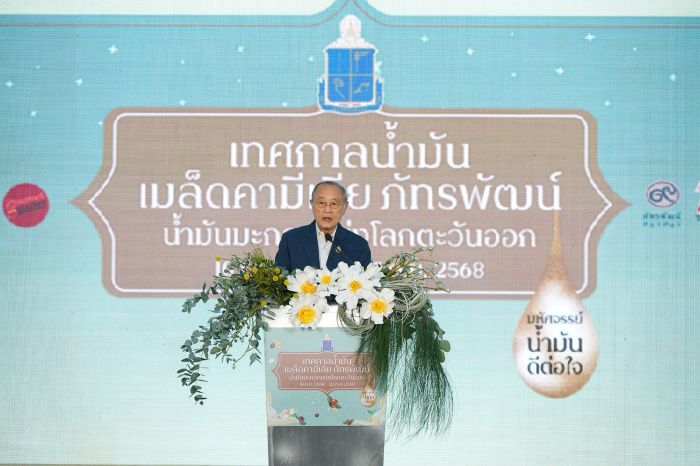 วันที่ 25 สิงหาคม 2568 เวลา 14.00 น. ดร.สุเมธ ตันติเวชกุล กรรมการและเลขาธิการมูลนิธิชัยพัฒนา เป็นประธานงานแถลงข่าว “เทศกาลน้ำมันเมล็ดคามีเลีย ภัทรพัฒน์ ทศวรรษแห่งคุณค่าจากน้ำมันเมล็ดคามีเลีย” ณ สเฟียร์ แกลลอรี่ สอง (Sphere Gallery 2) ชั้น 2 ณ ศูนย์การค้าเอ็มสเฟียร์ กรุงเทพมหานคร ซึ่งงาน “เทศกาลน้ำมันเมล็ดคามีเลีย ภัทรพัฒน์ ทศวรรษแห่งคุณค่าจากน้ำมันเมล็ดคามีเลีย” จะจัดให้มีขึ้นระหว่างวันที่ 10 – 23 กันยายน 2568