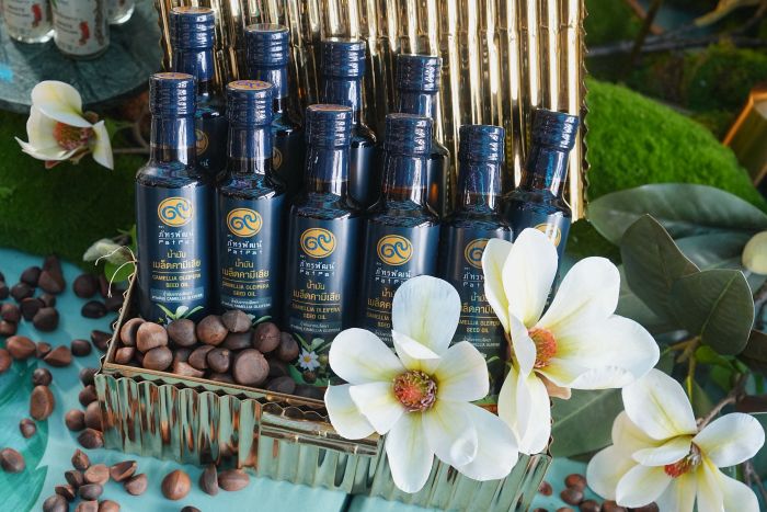 ในส่วนของน้ำมันเมล็ดคามีเลียนั้น เป็นที่รู้จักในประเทศจีนนานกว่า 1,000 ปี มีประโยชน์มากมายจนได้ชื่อว่าเป็น น้ำมันมะกอกแห่งโลกตะวันออก เนื่องจากมีองค์ประกอบของไขมันที่ดีต่อร่างกายไม่ด้อยไปกว่าน้ำมันมะกอก และไม่มีกรดไขมันทรานส์ ซึ่งทำให้ร่างกายสามารถดูดซึมวิตามินเอ ดี อี เค ได้อย่างมีประสิทธิภาพ นอกจากนี้น้ำมันเมล็ดคามีเลียยังมีกรดไขมันไม่อิ่มตัวสูง ช่วยป้องกันการเกิดโรคหลอดเลือดตีบ โรคอัมพาต โรคความดันโลหิต โรคเบาหวาน และโรคหัวใจ และยังอุดมไปด้วยสารต้านอนุมูลอิสระ อีกทั้งน้ำมันเมล็ดคามีเลียสามารถทนความร้อนได้มากกว่า 200 องศาเซลเซียส จึงทำให้สามารถนำมาประกอบอาหารได้หลากหลายวิธี ไม่ว่าจะใช้ในการหมัก การผัด หรือการทอดด้วยอุณหภูมิสูง น้ำมันเมล็ดคามีเลียถือเป็นน้ำมันที่ดีต่อสุขภาพของคนทุกเพศทุกวัย ปัจจุบันน้ำมันเมล็ดคามีเลีย ได้รับการรับรองคุณภาพมาตรฐานจากสำนักงานคณะกรรมการอาหารและยา และมูลนิธิหัวใจแห่งประเทศไทยในพระบรมราชูปถัมภ์ได้อนุญาตให้ใช้ตราสัญลักษณ์ “อาหารรักษ์หัวใจ” ในสินค้าน้ำมันเมล็ดคามีเลีย ภายใต้ตราสินค้าภัทรพัฒน์