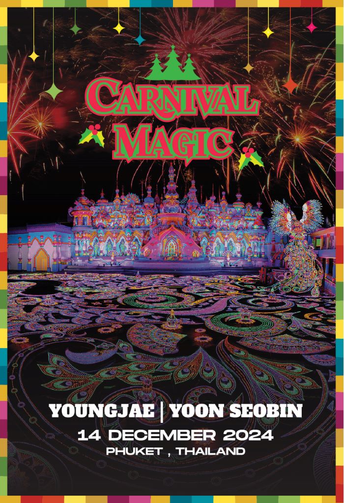 “ด้วยกระแสเคป็อปที่มาแรงอย่างต่อเนื่อง ทาง Carnival Magic จึงได้เชิญศิลปินชื่อดังในวงการเคป็อปอย่าง ยองแจ และ ยุนซอบิน ที่มีความสนุกสดใสเหมาะกับ Carnival Magic มาร่วมเปิดไฟต้นคริสต์มาส ครั้งนี้ถือว่าเป็นครั้งแรกของทั้งสองหนุ่มที่ได้มาร่วมงานที่จังหวัดภูเก็ต เพราะฉะนั้นอย่าลืมมาดูโชว์ของทั้งสองหนุ่มที่เตรียมมาให้แฟนๆ และชาว Carnival Magic โดยเฉพาะด้วยนะ ในงาน Carnival Xmas Magic วันที่ 14 ธันวาคม 2567 นี้ นะครับ”