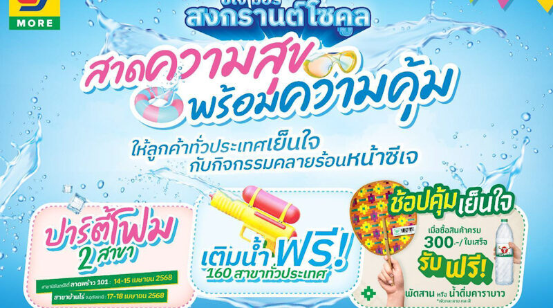 ร้อนแค่ไหนก็ไม่หวั่น! เทศกาลสงกรานต์ปีนี้ ซีเจ มอร์ (CJ MORE) เตรียมส่งมอบประสบการณ์ “สงกรานต์โซคุ้ม” ที่รวมความสนุก ความคุ้มค่า และความประทับใจมาให้แบบจัดเต็ม ทั้งโปรโมชั่นที่ให้ลูกค้าสมาชิกสบายการ์ดได้คลายร้อนกันทุกสาขาทั่วประเทศ พร้อมชวนลูกค้าดับร้อนด้วยการสืบสานประเพณีและเฉลิมฉลองปีใหม่ไทย ผ่านกิจกรรมปาร์ตี้โฟมสุดมันส์ และจุดเติมน้ำฟรีหน้าสาขาในช่วงเทศกาลสงกรานต์ที่กำลังจะถึงนี้