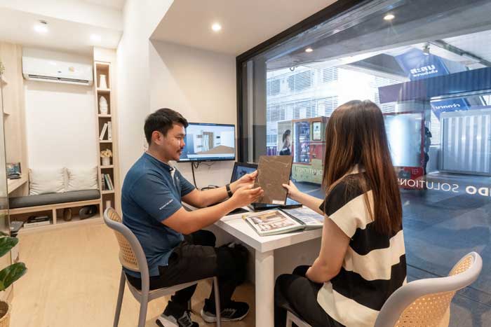 ทั้งนี้ Condo Solutions เป็นบริการออกแบบตกแต่งคอนโดแบบครบวงจรที่เหนือกว่าด้วยงานระบบรายเดียวในประเทศไทย นอกจากความครบครันที่มีให้เลือกทั้งเฟอร์นิเจอร์ทั้งบิลท์อินและลอยตัวแล้ว ยังมีบริการที่ดูแลด้านงานตกแต่งภายในอื่นๆ อาทิ การปูพื้น ดรอปฝ้า ย้ายปลั๊ก ทำผนังตกแต่ง กรุกระจก งานผ้าม่าน และวอลเปเปอร์ สวยครบทั้งห้องในราคาเริ่มต้นเพียง 5,500 บาทต่อตารางเมตร ที่ลงตัวทั้งดีไซน์และฟังก์ชันให้ได้ใช้พื้นที่อย่างคุ้มค่าทุกตารางเมตรตอบโจทย์ไลฟ์สไตล์การใช้ชีวิตของคนเมือง เรามี Interior Designer มืออาชีพ คอยดูแลเรื่องการออกแบบสไตล์การตกแต่งและยังมี Condo Decor Planner ที่เป็นมากกว่าผู้ช่วยส่วนตัวคอยให้คำปรึกษา ติดตามงาน บริหารจัดการเวลาและวางแผนติดตั้งต่างๆให้กับลูกค้าเพื่อให้การตกแต่งคอนโดเป็นเรื่องที่ง่ายและสะดวกมากขึ้น และเพื่อเพิ่มศักยภาพในการบริการให้สมบูรณ์แบบยิ่งขึ้น เสริมด้วยเฟอร์นิเจอร์นวัตกรรมใหม่อย่าง Transfur เฟอร์นิเจอร์ที่สามารถปรับเปลี่ยนรูปแบบ และเพิ่มฟังก์ชันการใช้งานได้มากขึ้นตามการใช้ชีวิต เพื่อให้ได้สนุกกับการใช้สเปซได้อย่างเต็มที่นับเป็นโซลูชั่นใหม่ที่ตอบโจทย์ลูกค้าที่อาศัยอยู่ในคอนโดมิเนียมได้อย่างแท้จริง