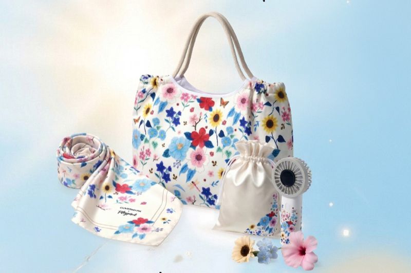 ต้อนรับซัมเมอร์นี้ ด้วย Summer Floral Collection ลวดลายดอกไม้ลิมิเต็ดเอดิชั่น สีสันสดใส โทนฟ้า-ขาว ซึ่งได้แรงบันดาลใจมาจากกลิ่นอายฤดูร้อนของญี่ปุ่น ได้แก่ กระเป๋าสะพายข้างสุดน่ารัก, พัดลมพกพา, ผ้าพันคอ และถุงผ้า สามารถรับของขวัญสุดพิเศษฟรีทันที เมื่อช้อปเครื่องสำอาง ณ เคาน์เตอร์ COVERMARK