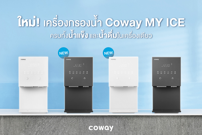 COWAY MY ICE ใช้ระบบกรองน้ำ Reverse Osmosis (RO) ที่สามารถกรองอนุภาคที่เล็กถึงระดับ 0.0001 ไมครอน หรือเล็กกว่าเส้นผมถึง 500,000 เท่า จึงขจัดสิ่งสกปรกที่มองไม่เห็นด้วยตาเปล่าทั้งเชื้อโรค คลอรีน โลหะหนัก และสารตกค้างได้อย่างมีประสิทธิภาพ ทำให้ได้น้ำดื่มสะอาดถึง 99.99% มาพร้อมระบบน้ำ 3 อุณหภูมิทั้ง น้ำร้อน น้ำอุณหภูมิปกติ และน้ำเย็นจัด Extra Cold 10 องศา ใช้แท็งก์เก็บน้ำใหญ่ถึง 5.1 ลิตร และยังสามารถนำน้ำดื่มจากระบบ RO มาทำน้ำแข็งได้ในเครื่องเดียว ยกระดับความปลอดภัยด้วยระบบฆ่าเชื้อด้วยแสง UV Sterilization ในแท็งก์น้ำแข็งวันละ 3 ครั้ง และที่หัวก๊อกวันละ 4 ครั้ง ใช้งานง่ายด้วยระบบ Touchscreen และเซ็นเซอร์ตรวจวัดแสงสว่างโดยรอบเพื่อเข้าสู่โหมดประหยัดพลังงาน รวมถึงฟีเจอร์อัจฉริยะอีกมากมาย มาพร้อมดีไซน์ที่โมเดิร์นเข้ากับการตกแต่งบ้านทุกสไตล์ เหมาะสำหรับครอบครัวขนาดกลางจำนวน 3-5 คน