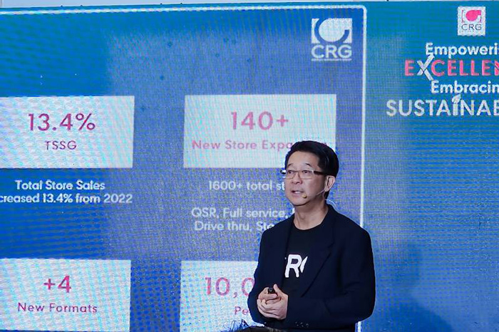 “ซีอาร์จี” (CRG) ย้ำภาพผู้นำธุรกิจเชนร้านอาหารที่มีศักยภาพ มั่นคง เชี่ยวชาญ และไม่เคยหยุดนิ่ง พร้อมปรับตัวเข้ากับทุกสถานการณ์ ประกาศเดินเครื่องเต็มกำลัง ทุ่มงบ 1 พันล้านบาท รุกตลาดปี 67 ด้วยแผนยุทธศาสตร์ Empowering EXCELLENCE, Embracing SUSTAINABILlTY ขับเคลื่อนองค์กรเติบโต ชู 4 กลยุทธ์หลัก โกยรายได้เพิ่ม 14% เปิดสาขาใหม่ไม่น้อยกว่า 100 สาขา เตรียมเล็งแบรนด์ใหม่เสริมทัพ เปิดโอกาสพาร์ตเนอร์ จับมือสร้างความมั่งคั่งไปพร้อมกัน ตั้งเป้าโกยยอด 16,600 ล้านบาท ทะยานสู่ความแข็งแกร่ง และการพัฒนาที่ยั่งยืนในทุกมิติ