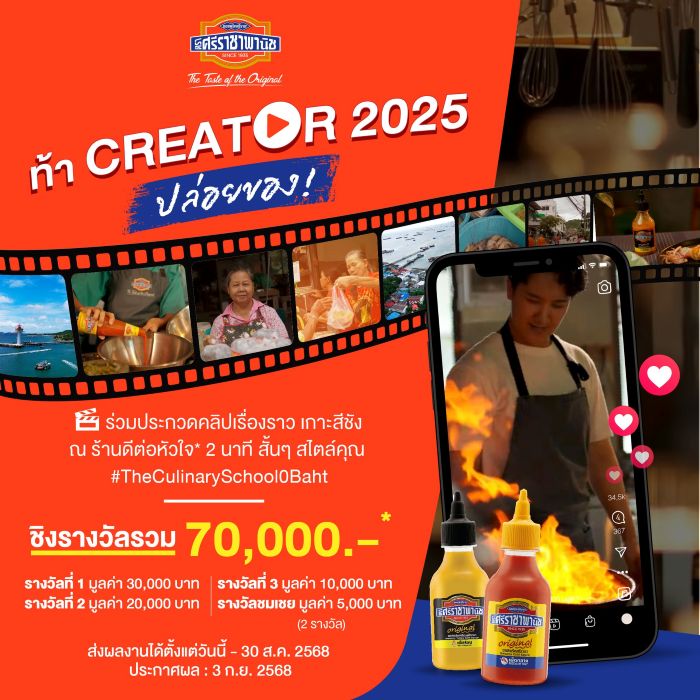 ซอสพริกศรีราชาพานิช x ดีต่อหัวใจ ชวนเหล่าครีเอเตอร์ปล่อยพลังความสร้างสรรค์ ร่วมประกวดคลิปเที่ยวเกาะสีชังมุมใหม่ ในแคมเปญ The Culinary School 0 Baht”