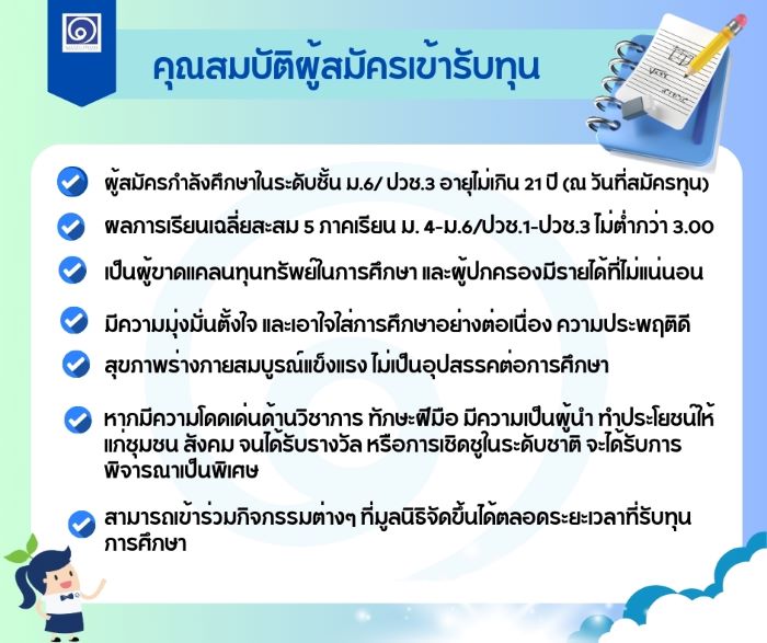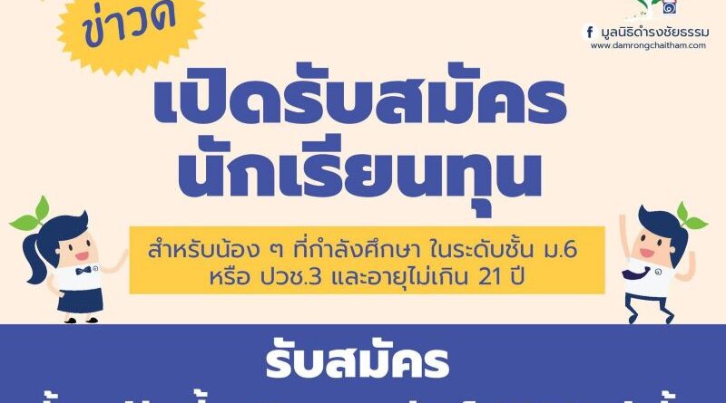 โอกาสดีๆ มาถึงแล้ว! มูลนิธิดำรงชัยธรรม เปิดโอกาสทางการศึกษาให้เยาวชนไทย มอบทุนการศึกษา ครบวงจรจนจบปริญญาตรี ผ่านโครงการ “ทุนสร้างคน สร้างบัณฑิต” โดย คุณไพบูลย์ ดำรงชัยธรรม ประธานกรรมการและผู้ก่อตั้งมูลนิธิฯ ได้ตั้งเป้าหมายส่งเสริมและสนับสนุนด้านการศึกษาให้กับเยาวชนของชาติ เพราะการศึกษาเป็นรากฐานสำคัญในการพัฒนาศักยภาพ เพื่อก้าวสู่อนาคตที่ดีในชีวิต