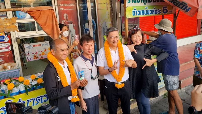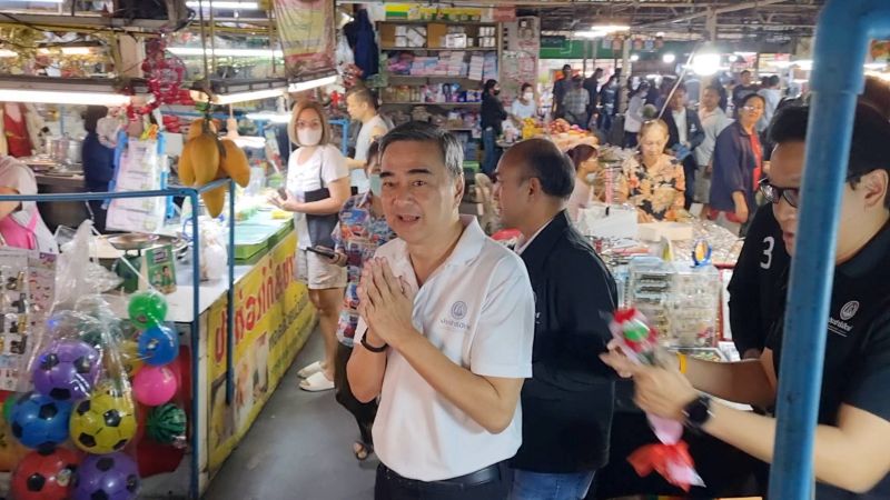 “อภิสิทธิ์–สกลธี” ลงพื้นที่ลาดกระบัง ช่วย “รัฐศักดิ์ สุขยิ่ง” หาเสียง พบประชาชนตลาดสดเกรียงไกร ชูนโยบายแก้เศรษฐกิจ–รื้อระบบประกันสังคม