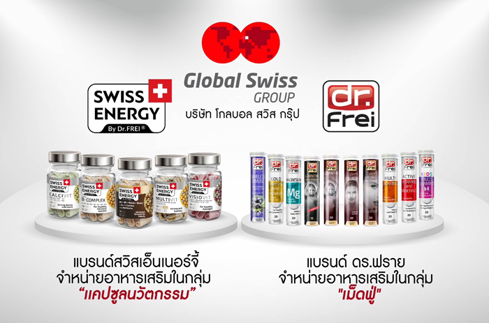 ในส่วนแบรนด์ สวิสเอ็นเนอร์จี้ (SWISS ENERGY ) ยังคงมีจำหน่ายอยู่ควบคู่กับทางแบรนด์ ดร.ฟราย ( DR.FREI ) โดย SWISS ENERGY จำหน่ายในกลุ่มแคปซูลนวัตกรรม Sustained Release และ แบรนด์ DR.FREI จำหน่ายสินค้าในกลุ่มเม็ดฟู่ โดยทั้งสองแบรนด์ อยู่ภายใต้กลุ่ม โกลบอลสวิสกรุ๊ป (Global Swiss Group)