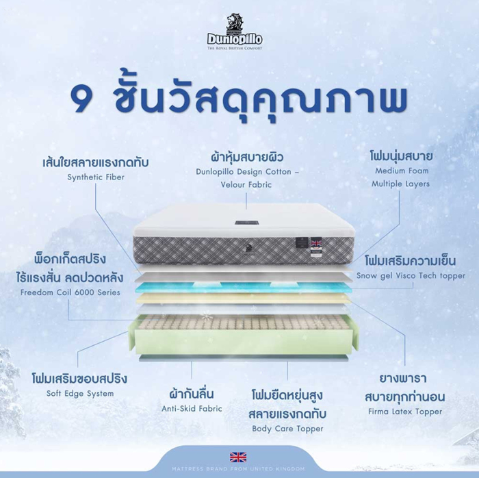 Snow Gel ที่นอนเย็นมีอยู่จริง รุ่น CAROLINE จาก Dunlopillo