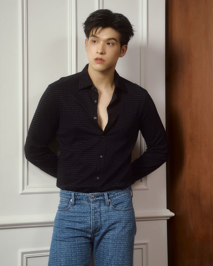 และปิดท้ายด้วยลุคสุดคลาสสิก – สกาย ในเชิ้ตสีดำคู่กับกางเกงยีนส์พิมพ์ลายโลโก้ all-over ขณะที่ นานิ เลือกสวมเสื้อคอวี พร้อมเพิ่มเลเยอร์ด้วยสเวตเตอร์พาดไหล่