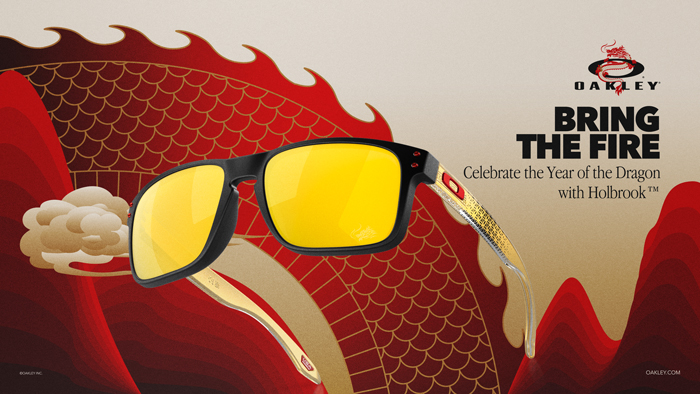 Oakley® 2024 คอลเล็กชั่น Lunar New Year นำเสนอแว่นตากันแดดรุ่นไอคอนิกอย่าง Holbrook® และ Sutro ที่มาพร้อมกับเลนส์ Prizm™ 24K ประดับโลโก้ภาพวาด Lunar Dragon โดดเด่นด้วยขาแว่นลวดลายเรขาคณิต ที่ได้รับแรงบันดาลใจมาจากปฏิทินจันทรคติ