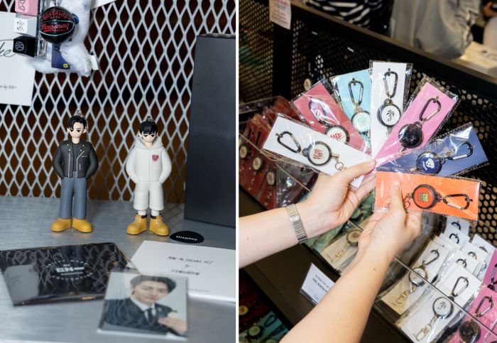 ผ้ากันเปื้อน WILL APRON โดย JAY, CONNECT-NECKLACE, COCO-SHELL TUMBLER โดย JAKE, MINI-ME FIGURE SET, 109 ZIP-UP HOODIE โดย SUNGHOON, FUZZY BEAR BEANIE, SHION ON THE DARK MOON LAMP โดย SUNOO
