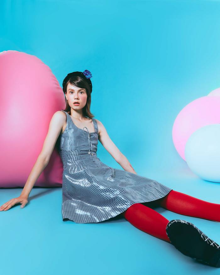 คอมพลีตลุคไปกับแอคเซสเซอรี่ อาทิ กระเป๋าสะพายไหล่ทรงเพาช์ผ้าซาตินสีม่วงไลแลค หรือจะเป็นกระเป๋าโท้ตใบน้อยที่มาอวดความน่ารักของลายจุดหลากสีปุกปุย รวมทั้งการใช้ดอกไม้ที่แสดงให้เห็นถึงความสดใสและความงดงาม พร้อมสนุกไปกับเอเลเมนต์ เช่น ดวงดาว ท้องฟ้าและหัวใจ ที่เข้ามาผสานกับดีไซน์ของเสื้อผ้าที่ให้ลุคแบบวินเทจเกิร์ลยุค 70 ไม่ว่าจะเป็นมินิเดรสแขนกุดสีฟ้าทรงกระสอบ หรือชุดเซ็ตที่ประกอบด้วยแจ็คเก็ตกับมินิสเกิร์ตอันชวนฝัน