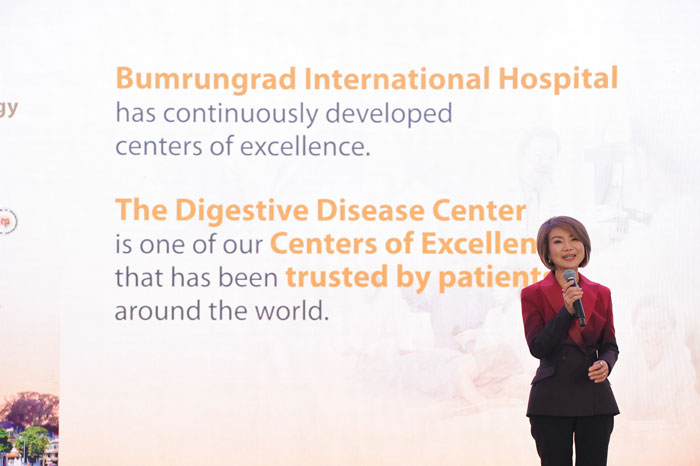 ดร.อาทิรัตน์ จารุกิจพิพัฒน์ ประธานเจ้าหน้าที่บริหาร โรงพยาบาลบำรุงราษฎร์ กล่าวว่า ตลอดระยะเวลา 43 ปี โรงพยาบาลบำรุงราษฎร์มุ่งมั่นสู่ความเป็นเลิศทางการแพทย์และนวัตกรรม โดยได้พัฒนาศูนย์ความเป็นเลิศทางการแพทย์มาอย่างต่อเนื่อง โรงพยาบาลบำรุงราษฎร์มีศูนย์ทางเดินอาหารและตับ ซึ่งเป็นหนึ่งในศูนย์ความเป็นเลิศทางการแพทย์ของโรงพยาบาลฯ ที่ได้รับความไว้วางใจจากผู้ป่วยทั่วโลก