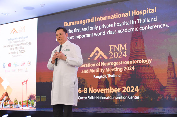 ศ.นพ. สุเทพ กลชาญวิทย์ ประธานจัดงาน FNM 2024 หัวหน้าศูนย์เชี่ยวชาญเฉพาะทางด้านระบบประสาทและการเคลื่อนไหวของระบบทางเดินอาหาร จุฬาลงกรณ์มหาวิทยาลัย และหัวหน้าศูนย์เฉพาะทางด้านการทำงานระบบทางเดินอาหาร โรงพยาบาลบำรุงราษฎร์ กล่าวว่า FNM 2024 เป็นงานประชุมวิชาการระดับนานาชาติด้านระบบประสาทและการเคลื่อนไหวของระบบทางเดินอาหาร ซึ่งเกิดขึ้นจากความร่วมมือขององค์กรชั้นนำทางด้านระบบประสาทและการเคลื่อนไหวของระบบทางเดินอาหาร ได้แก่ the American Neurogastroenterology and Motility Society (ANMS), the European Society of Neurogastroenterology and Motility (ESNM), the Asian Neurogastroenterology and Motility Association (ANMA), Australasian Neurogastroenterology & Motility Association (ANGMA) และ Sociedad Latinoamericana de Neurogastroenterología (SLNG)