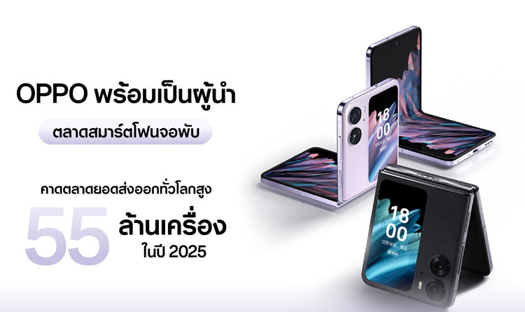 คาดตลาดสมาร์ตโฟนจอพับส่งออกทั่วโลกพุ่งขึ้นสูง 55 ล้านเครื่องภายในปี 2025 OPPO มองเห็นส่วนแบ่งการตลาดที่เพิ่มขึ้นในภูมิภาคหลัก