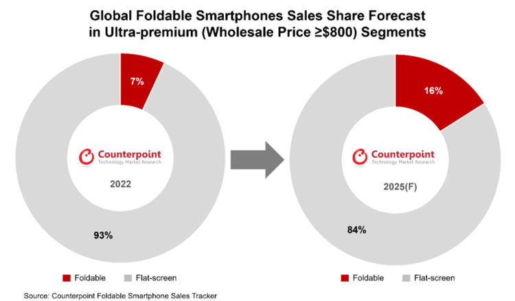 สมาร์ตโฟนจอพับได้ได้รับความนิยมมากขึ้นในช่วงไม่กี่ปีที่ผ่านมานี้นับตั้งแต่เปิดตัวสมาร์ตโฟนกลุ่มนี้ เพื่อเจาะลึกตลาดสมาร์ตโฟนจอพับที่มีการแข่งขันสูง จากการศึกษาของ Counterpoint พบว่าการส่งออกสมาร์ตโฟนจอพับทั่วโลกจะสูงขึ้นถึง 55 ล้านเครื่องภายในปี 2025 ควบคู่ไปกับการก้าวหน้าอย่างมากของแบรนด์สมาร์ตโฟนระดับโลก