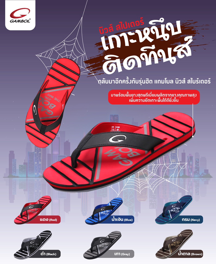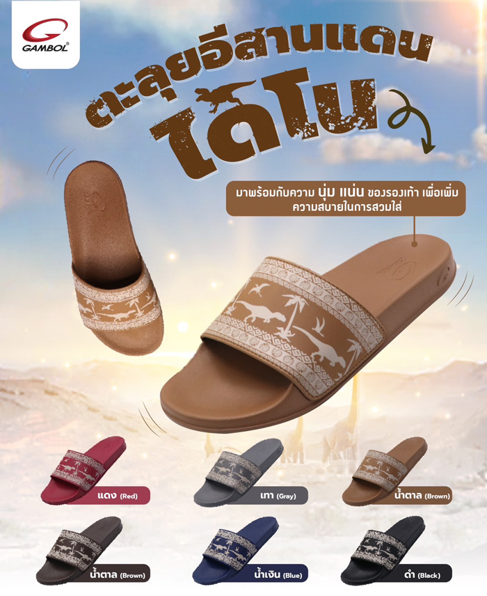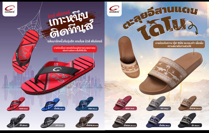 นับว่าเป็นรองเท้าแตะแบรนด์ไทยที่เน้นการผลิตรองเท้าคุณภาพ พิถีพิถัน ใส่ใจทุกขั้นตอนมาอย่างต่อเนื่อง ตั้งแต่การออกแบบที่เป็นเอกลักษณ์เฉพาะ การคัดสรรวัตถุดิบ รวมถึงนวัตกรรมการผลิตเฉพาะด้วย G-Bold Technology™ ที่ทำให้สินค้า นุ่ม ทน เบา สบาย ตามสไตล์ GAMBOL ที่พร้อมเดินทางไปกับผู้สวมใส่ สร้างความมั่นใจและช่วยซัพพอร์ตทุกย่างก้าว ล่าสุดส่ง 2 คอลเลกชั่น รองเท้านิวส์ สไปเดอร์ และไดโน่ ลวดลายสุด ไอคอนิกมาเพิ่มสีสันและความสดใสให้สนุกไปกับรองเท้าที่ใช่ ใส่แบบไหนก็สบาย